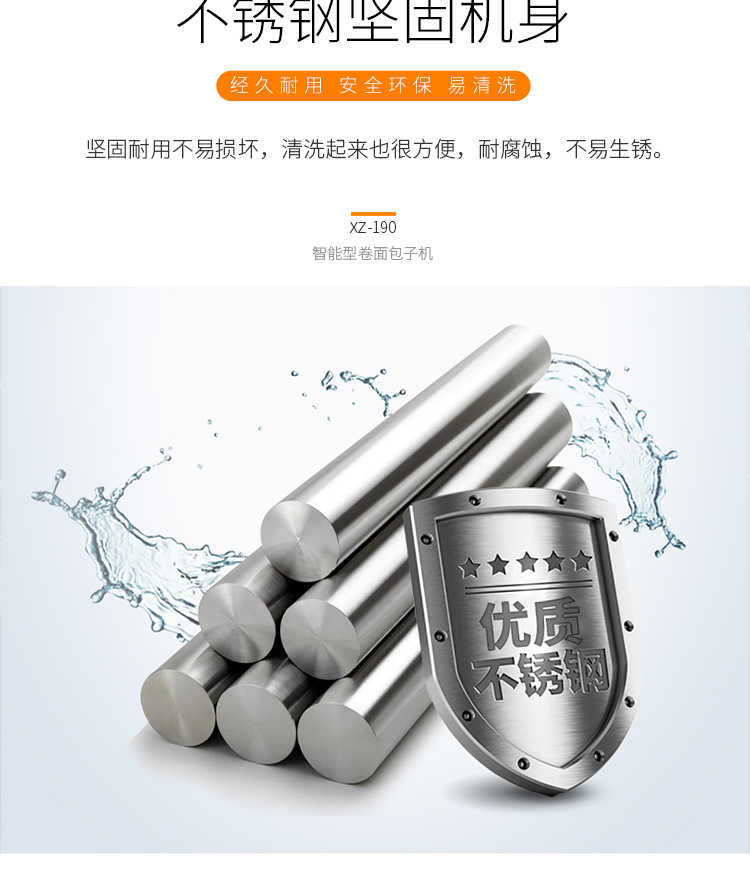 XZ-190智能型卷面式包子機,科技和工藝出乎想象不傷面筋,不斷面筋,薄厚調(diào)節(jié)自如可直接調(diào)節(jié)面皮的薄厚,所出產(chǎn)品外形大小統(tǒng)一,遠比手工制作美觀!