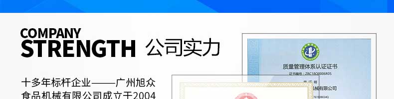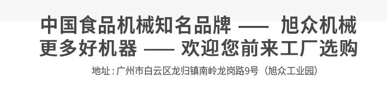廣州旭眾食品機(jī)械有限公司是一家集科研開發(fā),生產(chǎn)設(shè)計(jì),營(yíng)銷服務(wù)為一體的現(xiàn)代化生產(chǎn)企業(yè)。現(xiàn)代化生產(chǎn)車間,精湛制造技術(shù),所產(chǎn)機(jī)械歷經(jīng)市場(chǎng)重重考驗(yàn),不斷贏得海內(nèi)外客戶的贊譽(yù)。