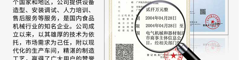 廣州旭眾食品機械有限公司是一家集科研開發(fā),生產(chǎn)設計,營銷服務為一體的現(xiàn)代化生產(chǎn)企業(yè)?,F(xiàn)代化生產(chǎn)車間,精湛制造技術(shù),所產(chǎn)機械歷經(jīng)市場重重考驗,不斷贏得海內(nèi)外客戶的贊譽。