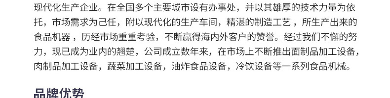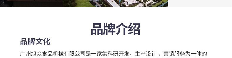 廣州旭眾食品機械有限公司是一家集科研開發(fā),生產設計,營銷服務為一體的現(xiàn)代化生產企業(yè)?,F(xiàn)代化生產車間,精湛制造技術,所產機械歷經市場重重考驗,不斷贏得海內外客戶的贊譽。