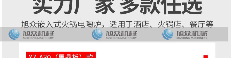 嵌入式電陶爐XZ-A30,實(shí)力廠家·采用高品質(zhì)零配件。廠家直銷,售后無憂。廣州旭眾食品機(jī)械有限公司是集研發(fā)設(shè)計、生產(chǎn)銷售于一體的現(xiàn)代化企業(yè)。一站式購機(jī),無中間差價。