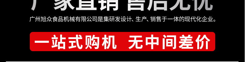 廣州旭眾食品機(jī)械有限公司是一家集科研開(kāi)發(fā),生產(chǎn)設(shè)計(jì),營(yíng)銷(xiāo)服務(wù)為一體的現(xiàn)代化生產(chǎn)企業(yè)。現(xiàn)代化生產(chǎn)車(chē)間,精湛制造技術(shù),所產(chǎn)機(jī)械歷經(jīng)市場(chǎng)重重考驗(yàn),不斷贏得海內(nèi)外客戶的贊譽(yù)。