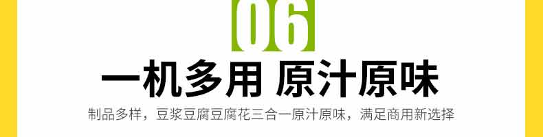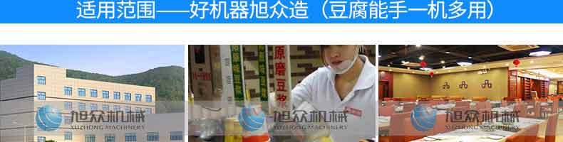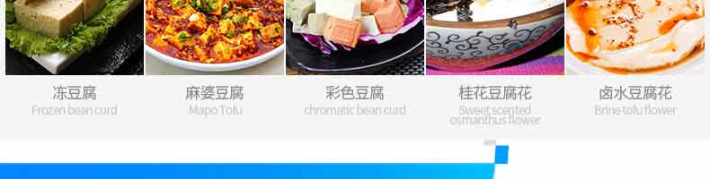XZ-60智能豆腐機(jī),一機(jī)多用:可生產(chǎn)豆腐系列產(chǎn)品:?jiǎn)紊?,老)豆腐、多彩?腐、單色豆腐皮、多色豆腐皮、彩色豆腐干、豆?jié){、豆花等豆制品制作,還可以與其他設(shè)備和工藝配套生 產(chǎn)更多的豆制品。