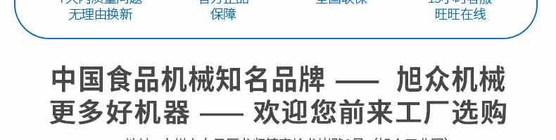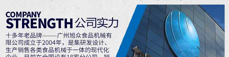廣州旭眾食品機(jī)械有限公司是一家集科研開(kāi)發(fā),生產(chǎn)設(shè)計(jì),營(yíng)銷(xiāo)服務(wù)為一體的現(xiàn)代化生產(chǎn)企業(yè)?,F(xiàn)代化生產(chǎn)車(chē)間,精湛制造技術(shù),所產(chǎn)機(jī)械歷經(jīng)市場(chǎng)重重考驗(yàn),不斷贏得海內(nèi)外客戶的贊譽(yù)。