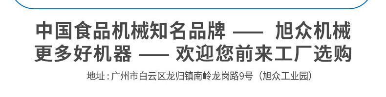 廣州旭眾食品機(jī)械有限公司是一家集科研開發(fā),生產(chǎn)設(shè)計(jì),營(yíng)銷服務(wù)為一體的現(xiàn)代化生產(chǎn)企業(yè)?,F(xiàn)代化生產(chǎn)車間,精湛制造技術(shù),所產(chǎn)機(jī)械歷經(jīng)市場(chǎng)重重考驗(yàn),不斷贏得海內(nèi)外客戶的贊譽(yù)。