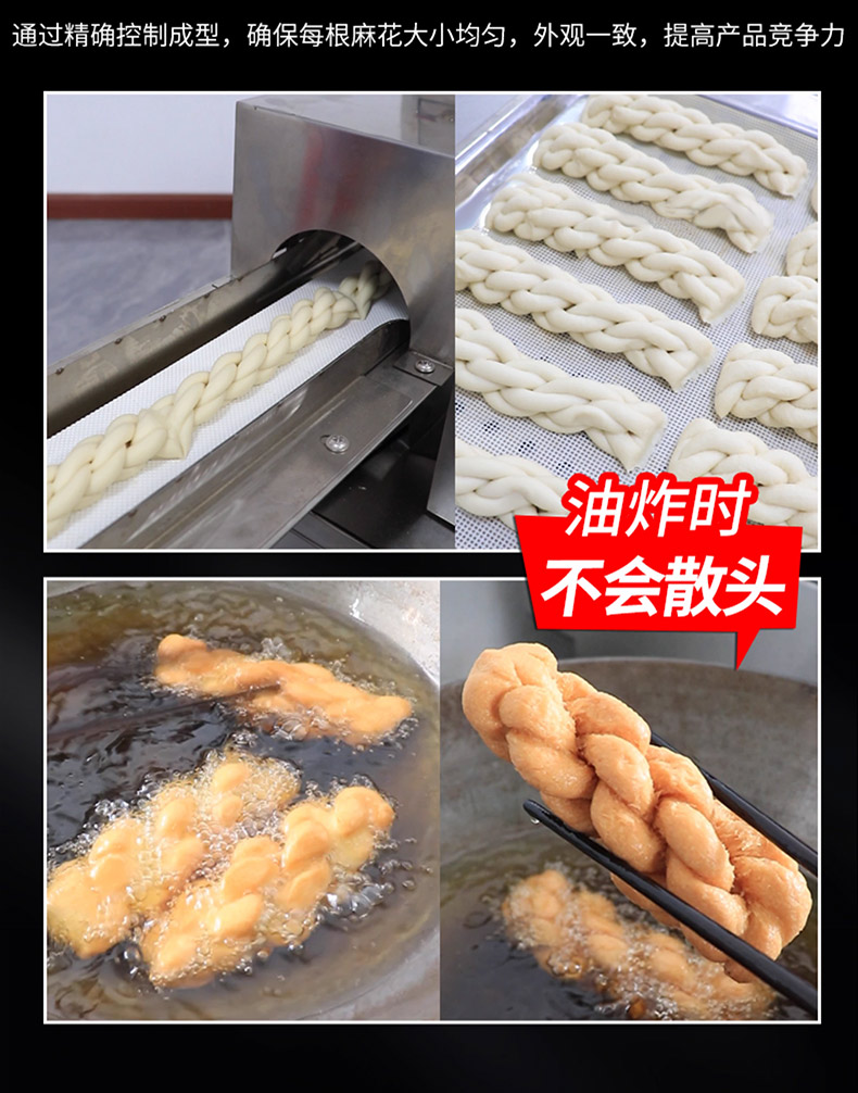 XZ-MH-200麻花機(jī),技術(shù)支持、贈(zèng)送配方、支持定制,1小時(shí)加工60斤麻花。切段均勺、且不粘面,麻花長短可調(diào)??赏ㄟ^調(diào)節(jié)切刀時(shí)間、控制麻花的長度。通過精確控制成型,確保每根麻花大小均勻,外觀一致,提高產(chǎn)品競爭力。