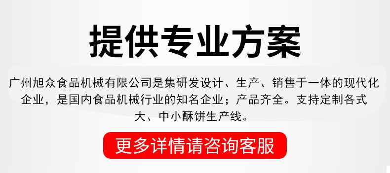 廣州旭眾食品機(jī)械有限公司是一家集科研開發(fā),生產(chǎn)設(shè)計(jì),營銷服務(wù)為一體的現(xiàn)代化生產(chǎn)企業(yè)。現(xiàn)代化生產(chǎn)車間,精湛制造技術(shù),所產(chǎn)機(jī)械歷經(jīng)市場重重考驗(yàn),不斷贏得海內(nèi)外客戶的贊譽(yù)。