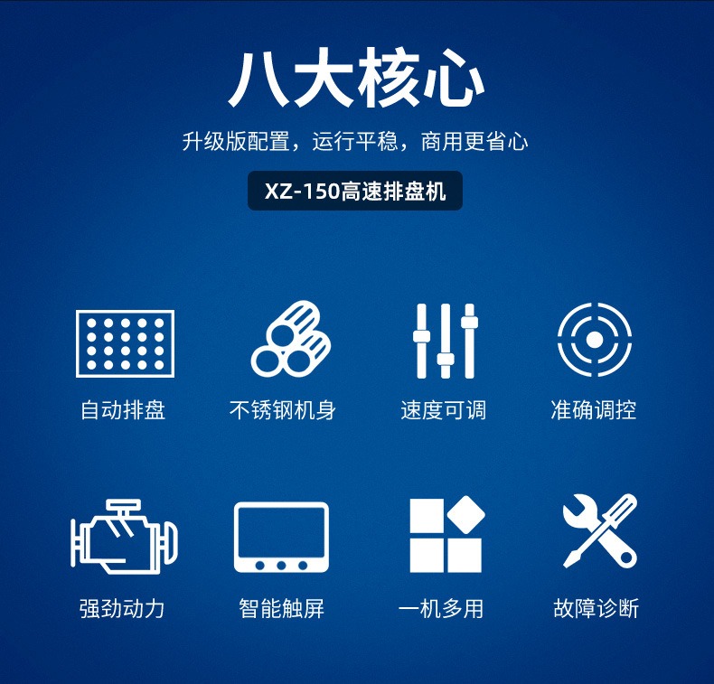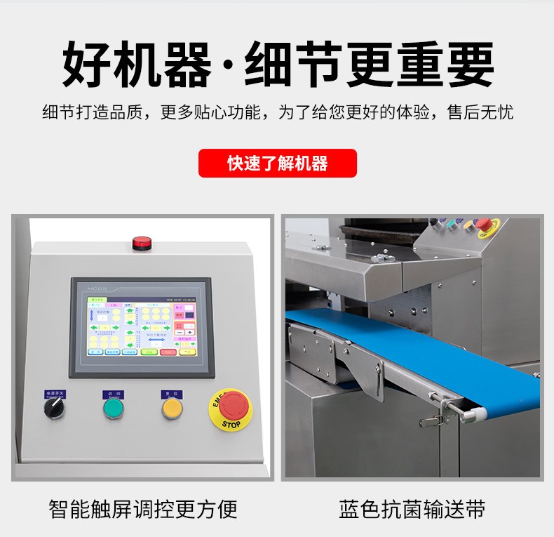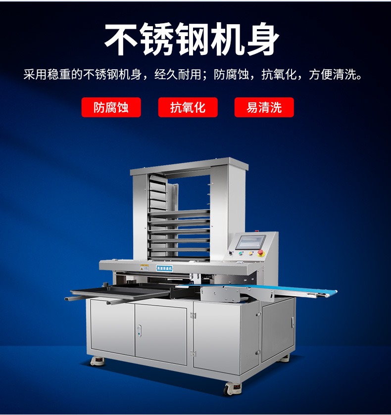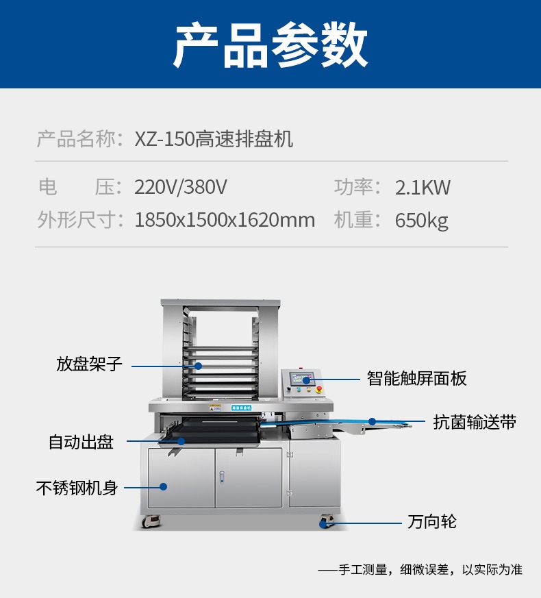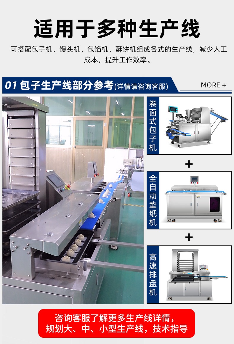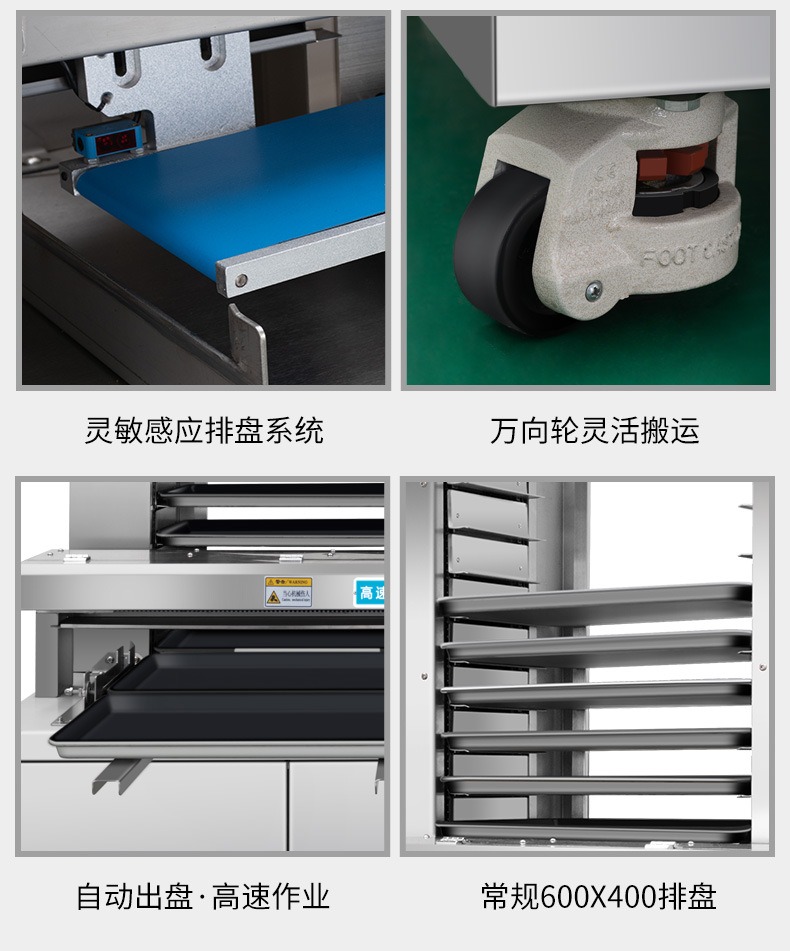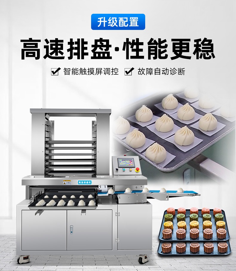 多功能商用高速排盤機(jī),自動(dòng)化程度高,可根據(jù)產(chǎn)品大小自由調(diào)節(jié)列數(shù)、排數(shù),自動(dòng)將產(chǎn)品自動(dòng)地排放在烘盤中,操作簡單,運(yùn)行平穩(wěn)。智能觸屏面板。控制系統(tǒng)由三菱PLC和進(jìn)口觸摸屏組成,操作簡單方便。具有故障自動(dòng)診斷,一目了然。