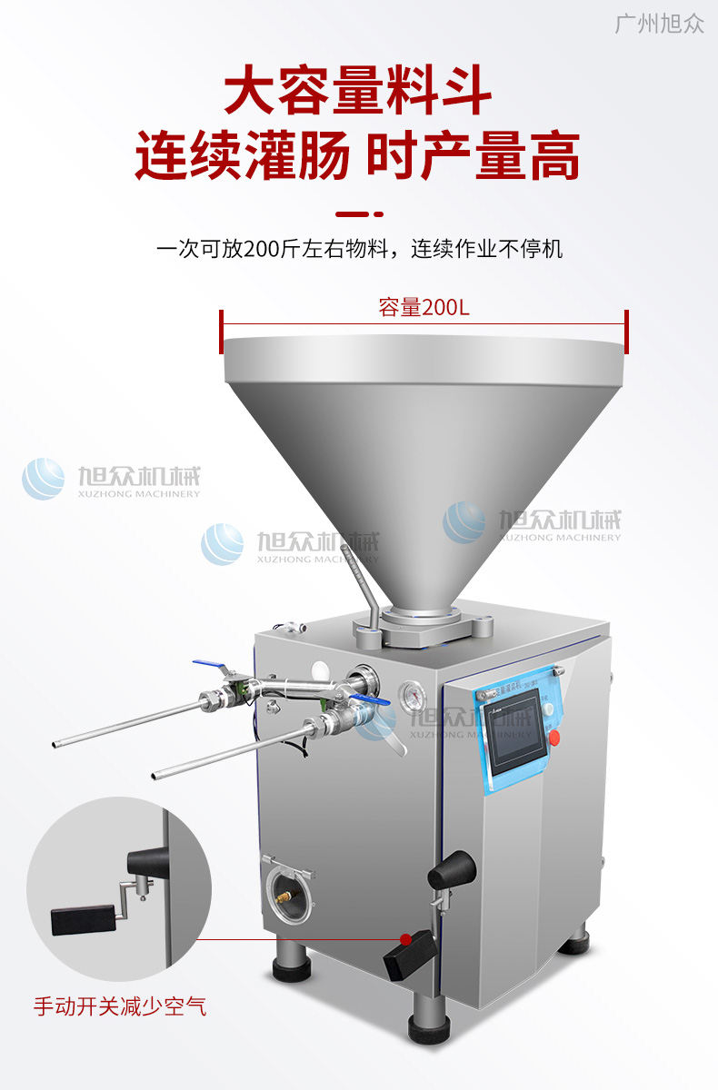XZ-ZKG2800真空灌腸機(jī),真空葉片灌裝機(jī)連續(xù)作業(yè)加料后不需停機(jī),可灌肉粒&肉糜實(shí)用性強(qiáng)灌各種腸可做烤腸、親親腸、廣式臘腸、火鍋腸等連續(xù)灌制長腸。