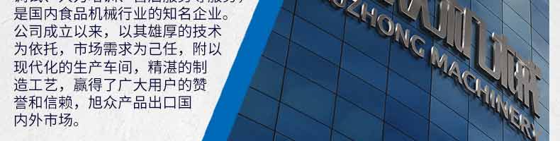 廣州旭眾食品機(jī)械有限公司是一家集科研開發(fā),生產(chǎn)設(shè)計(jì),營銷服務(wù)為一體的現(xiàn)代化生產(chǎn)企業(yè)。現(xiàn)代化生產(chǎn)車間,精湛制造技術(shù),所產(chǎn)機(jī)械歷經(jīng)市場重重考驗(yàn),不斷贏得海內(nèi)外客戶的贊譽(yù)。