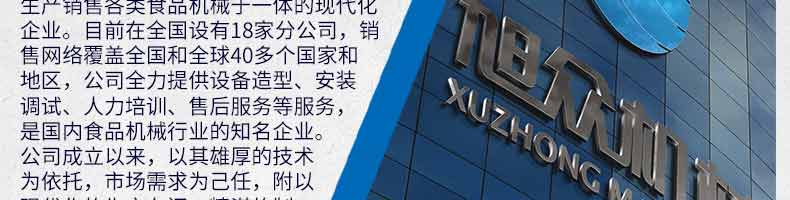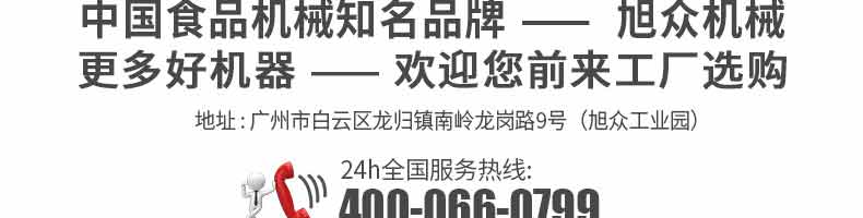 廣州旭眾食品機械有限公司是一家集科研開發(fā),生產設計,營銷服務為一體的現代化生產企業(yè)?,F代化生產車間,精湛制造技術,所產機械歷經市場重重考驗,不斷贏得海內外客戶的贊譽。