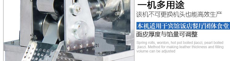 JGB-80型號(hào)餃子機(jī),本機(jī)是一款可生產(chǎn)各種肉餡、肉菜混合餡、全菜餡及其他種餡餃子的設(shè)備。包制出來的餃子可蒸、煮、炸、煎等多種調(diào)理。適用于賓館、飯店、餐廳、團(tuán)體食堂加工,幼兒園、速凍餃子生產(chǎn)。