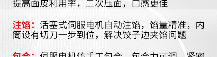 JGB-10型一體式餃子機,制皮成型一體餃子機,科技化生產(chǎn)/人性化設計。餃型可蒸、可炸、可煮,可適應不同場合的客戶需求。功能、智能一體,以自動化科技與過硬質(zhì)量貼心服務。