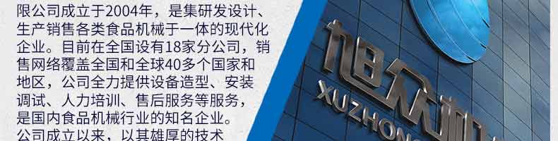 廣州旭眾食品機械有限公司是一家集科研開發(fā),生產(chǎn)設(shè)計,營銷服務(wù)為一體的現(xiàn)代化生產(chǎn)企業(yè)。現(xiàn)代化生產(chǎn)車間,精湛制造技術(shù),所產(chǎn)機械歷經(jīng)市場重重考驗,不斷贏得海內(nèi)外客戶的贊譽。