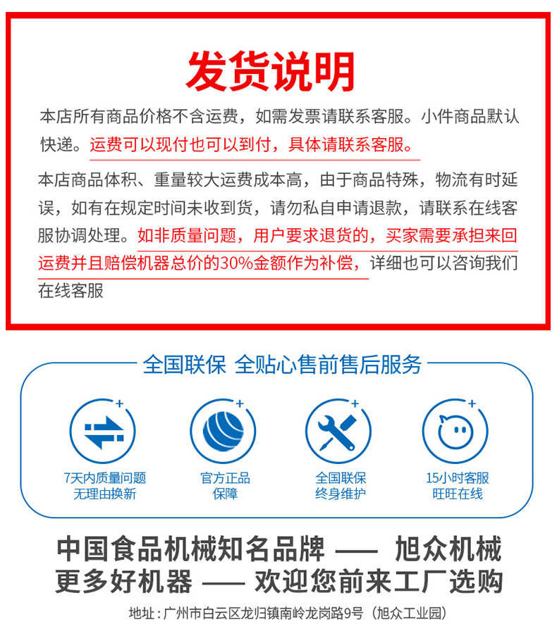 廣州旭眾食品機(jī)械有限公司是一家集科研開發(fā),生產(chǎn)設(shè)計(jì),營(yíng)銷服務(wù)為一體的現(xiàn)代化生產(chǎn)企業(yè)。現(xiàn)代化生產(chǎn)車間,精湛制造技術(shù),所產(chǎn)機(jī)械歷經(jīng)市場(chǎng)重重考驗(yàn),不斷贏得海內(nèi)外客戶的贊譽(yù)。
