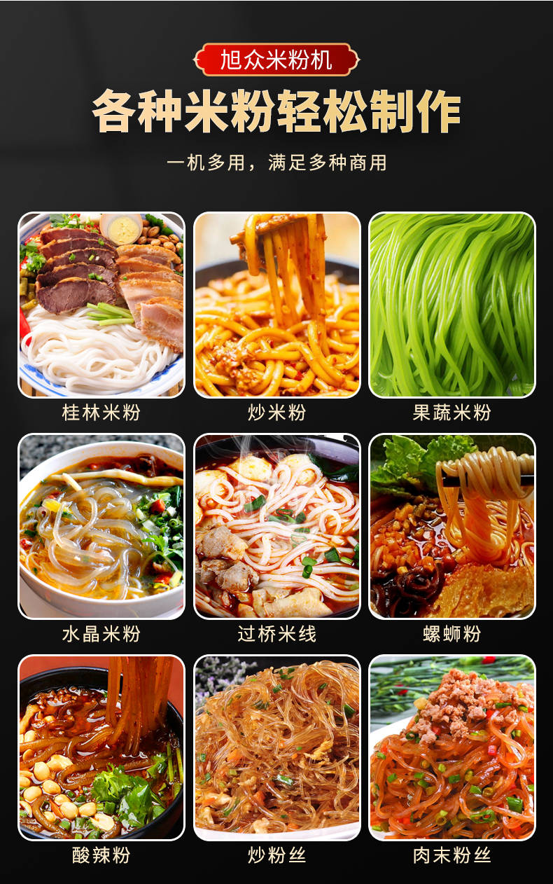 SZ-60不銹鋼米粉機,可生產米粉、米線、桂林米粉、過橋米線、年糕、糍粑等產品。各種形狀都可生產(圓、扁),加工食品外表光滑,厚薄、寬窄、粗細均勻可調,筋軟適度,有彈性,口感柔軟、味道純正。