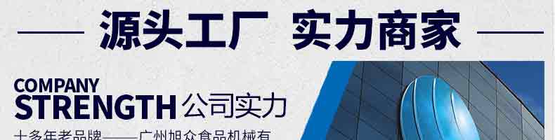 廣州旭眾食品機(jī)械有限公司是一家集科研開(kāi)發(fā),生產(chǎn)設(shè)計(jì),營(yíng)銷服務(wù)為一體的現(xiàn)代化生產(chǎn)企業(yè)?,F(xiàn)代化生產(chǎn)車間,精湛制造技術(shù),所產(chǎn)機(jī)械歷經(jīng)市場(chǎng)重重考驗(yàn),不斷贏得海內(nèi)外客戶的贊譽(yù)。