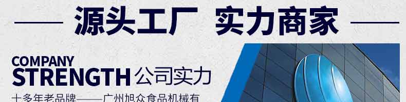 廣州旭眾食品機械有限公司是一家集科研開發(fā),生產(chǎn)設(shè)計,營銷服務(wù)為一體的現(xiàn)代化生產(chǎn)企業(yè)。現(xiàn)代化生產(chǎn)車間,精湛制造技術(shù),所產(chǎn)機械歷經(jīng)市場重重考驗,不斷贏得海內(nèi)外客戶的贊譽。