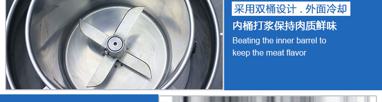 SZ-18型肉丸打漿機(jī),本機(jī)裝肉用桶子采用不銹鋼制造,達(dá)到衛(wèi)生要求,肉桶外罩和桶底裝有冷卻裝置,確保肉漿新鮮。比手工的打漿更精細(xì),所產(chǎn)肉丸、魚(yú)丸彈性好,色澤潔白。