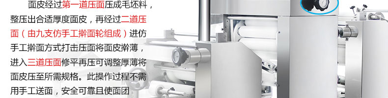 xz-15c三道搟面酥餅機,仿手工制作面食產品的機型,占地面積小,重量輕,運用搟面杖壓面和打擊面團,以保證高面筋性和面帶的密度,并綜合考慮面食的口感而研發(fā)。可生產東北糖酥餅,東北大香酥餅,蘇式月餅,芝麻餅,鮮花餅,老婆餅。購機免費提供工藝技術