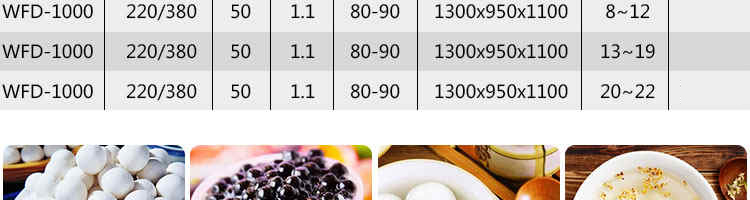 VFD-1000無餡湯圓機,本機可生產(chǎn)無餡湯圓、珍珠湯圓、桂花湯圓、奶茶所用的珍珠、檳榔紅丸、工藝品等。規(guī)格有8-34mm,可根據(jù)客戶要求定制。適用于個體戶、食品廠、學校等單位食堂??蓾M足不同客戶群體。免費提供工藝技術(shù)。