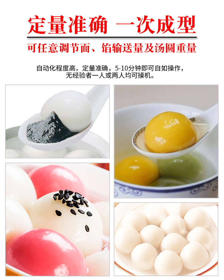 VFD-4000B湯圓機(jī),定量準(zhǔn)確自動(dòng)搓圓排盤成型大小均勻口感柔滑??芍谱鞲魇桨W食品,如湯圓、芝麻球、豆沙包、南瓜餅、奶黃包等