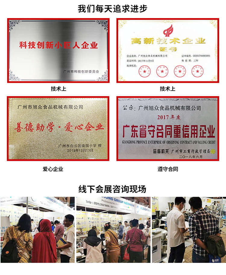 廣州旭眾食品機(jī)械有限公司是一家集科研開發(fā),生產(chǎn)設(shè)計(jì),營(yíng)銷服務(wù)為一體的現(xiàn)代化生產(chǎn)企業(yè)。現(xiàn)代化生產(chǎn)車間,精湛制造技術(shù),所產(chǎn)機(jī)械歷經(jīng)市場(chǎng)重重考驗(yàn),不斷贏得海內(nèi)外客戶的贊譽(yù)。
