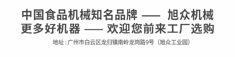 廣州旭眾食品機械有限公司是一家集科研開發(fā),生產設計,營銷服務為一體的現(xiàn)代化生產企業(yè)。現(xiàn)代化生產車間,精湛制造技術,所產機械歷經市場重重考驗,不斷贏得海內外客戶的贊譽。