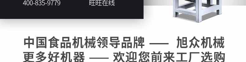 廣州旭眾食品機(jī)械有限公司是一家集科研開發(fā),生產(chǎn)設(shè)計(jì),營銷服務(wù)為一體的現(xiàn)代化生產(chǎn)企業(yè)?,F(xiàn)代化生產(chǎn)車間,精湛制造技術(shù),所產(chǎn)機(jī)械歷經(jīng)市場重重考驗(yàn),不斷贏得海內(nèi)外客戶的贊譽(yù)。