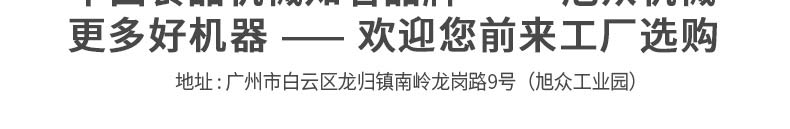 廣州旭眾食品機械有限公司是一家集科研開發(fā),生產(chǎn)設(shè)計,營銷服務(wù)為一體的現(xiàn)代化生產(chǎn)企業(yè)。現(xiàn)代化生產(chǎn)車間,精湛制造技術(shù),所產(chǎn)機械歷經(jīng)市場重重考驗,不斷贏得海內(nèi)外客戶的贊譽。
