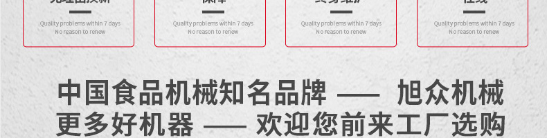 廣州旭眾食品機(jī)械有限公司是一家集科研開發(fā),生產(chǎn)設(shè)計(jì),營(yíng)銷服務(wù)為一體的現(xiàn)代化生產(chǎn)企業(yè)。現(xiàn)代化生產(chǎn)車間,精湛制造技術(shù),所產(chǎn)機(jī)械歷經(jīng)市場(chǎng)重重考驗(yàn),不斷贏得海內(nèi)外客戶的贊譽(yù)。