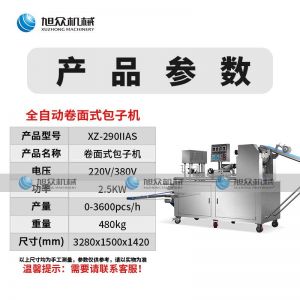 290IIAS卷面式包子機(jī),可生產(chǎn)各種不同餡料的包子、各式包餡食品,如豆沙包、南瓜餅、肉包、小籠包、水晶包等幾十種包餡制品。適用于個(gè)體戶、食品廠、學(xué)校等單位食堂??蓾M足不同客戶群體。免費(fèi)提供工藝技術(shù)。