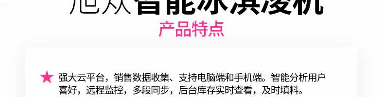 無人售貨冰淇淋機(jī), 人工成本越來越高,無人店、無人售賣機(jī)必將是一個(gè)趨勢(shì)。簡(jiǎn)單而又重復(fù)的勞動(dòng)(售賣)必將被智能無人替代。無人售貨自助冰淇淋機(jī)支持多種支付方式,支持遠(yuǎn)程監(jiān)管功能,支持預(yù)冷保鮮,支持多種口味混合,自動(dòng)清洗少料報(bào)警。無需人工、場(chǎng)地?zé)o限制。