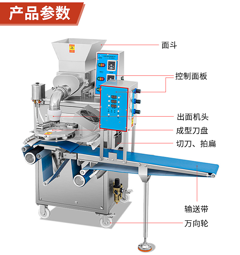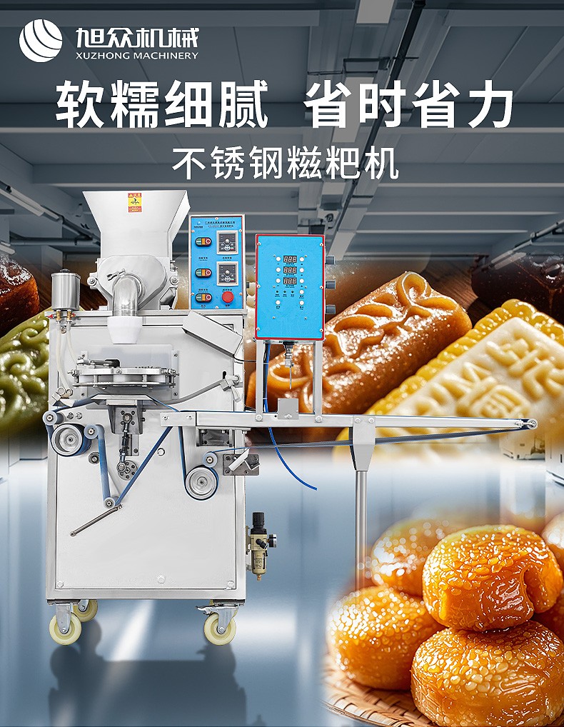 XZ-5000C糍粑機,軟糯細膩、省時省力,不銹鋼糍粑機。智能控制面板,智能內芯控制,可自由調節(jié)輸送,切刀和打餅的時間。拍扁刀切功能,具備氣缸打餅以及氣缸切刀的功能、又薄又準確、可制作長條形的產品。