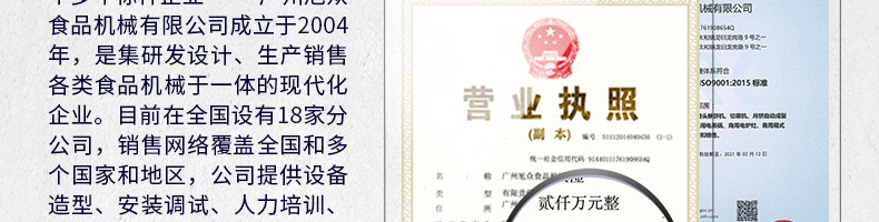 廣州旭眾食品機(jī)械有限公司是一家集科研開發(fā),生產(chǎn)設(shè)計(jì),營(yíng)銷服務(wù)為一體的現(xiàn)代化生產(chǎn)企業(yè)?,F(xiàn)代化生產(chǎn)車間,精湛制造技術(shù),所產(chǎn)機(jī)械歷經(jīng)市場(chǎng)重重考驗(yàn),不斷贏得海內(nèi)外客戶的贊譽(yù)。