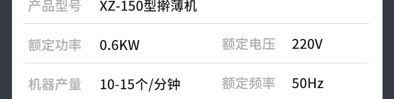 XZ-150型搟薄機,為一種對面團可進行氣動拍餅或仿手工搟薄的設備,可根據(jù)用戶需要對面團的直徑、厚度進行調(diào)整并將面團按照設定的規(guī)格進行搓圓摔搟薄。