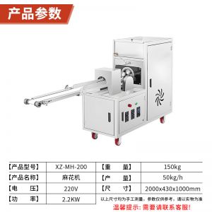 XZ-MH-200麻花機(jī),技術(shù)支持、贈(zèng)送配方、支持定制,1小時(shí)加工60斤麻花。切段均勺、且不粘面,麻花長短可調(diào)??赏ㄟ^調(diào)節(jié)切刀時(shí)間、控制麻花的長度。通過精確控制成型,確保每根麻花大小均勻,外觀一致,提高產(chǎn)品競爭力。