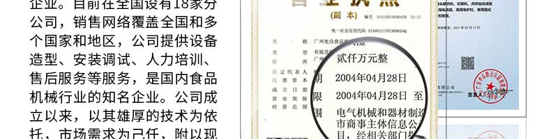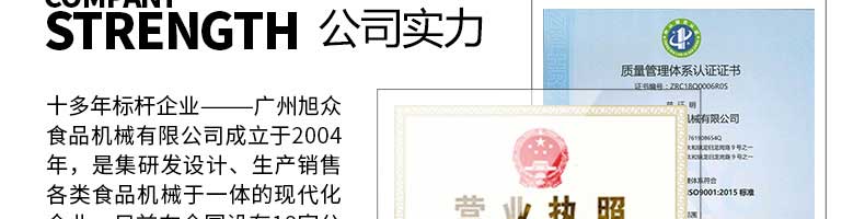 廣州旭眾食品機(jī)械有限公司是一家集科研開(kāi)發(fā),生產(chǎn)設(shè)計(jì),營(yíng)銷(xiāo)服務(wù)為一體的現(xiàn)代化生產(chǎn)企業(yè)?,F(xiàn)代化生產(chǎn)車(chē)間,精湛制造技術(shù),所產(chǎn)機(jī)械歷經(jīng)市場(chǎng)重重考驗(yàn),不斷贏得海內(nèi)外客戶(hù)的贊譽(yù)。