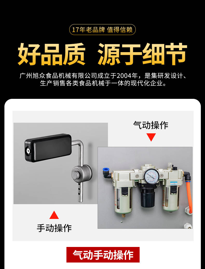 廣州旭眾食品機械有限公司是一家集科研開發(fā),生產(chǎn)設(shè)計,營銷服務(wù)為一體的現(xiàn)代化生產(chǎn)企業(yè)?,F(xiàn)代化生產(chǎn)車間,精湛制造技術(shù),所產(chǎn)機械歷經(jīng)市場重重考驗,不斷贏得海內(nèi)外客戶的贊譽。