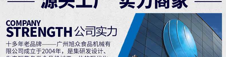 廣州旭眾食品機械有限公司是一家集科研開發(fā),生產設計,營銷服務為一體的現代化生產企業(yè)?,F代化生產車間,精湛制造技術,所產機械歷經市場重重考驗,不斷贏得海內外客戶的贊譽。