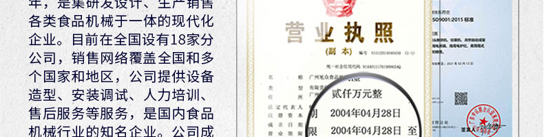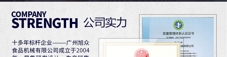 廣州旭眾食品機(jī)械有限公司是一家集科研開(kāi)發(fā),生產(chǎn)設(shè)計(jì),營(yíng)銷(xiāo)服務(wù)為一體的現(xiàn)代化生產(chǎn)企業(yè)?,F(xiàn)代化生產(chǎn)車(chē)間,精湛制造技術(shù),所產(chǎn)機(jī)械歷經(jīng)市場(chǎng)重重考驗(yàn),不斷贏得海內(nèi)外客戶的贊譽(yù)。
