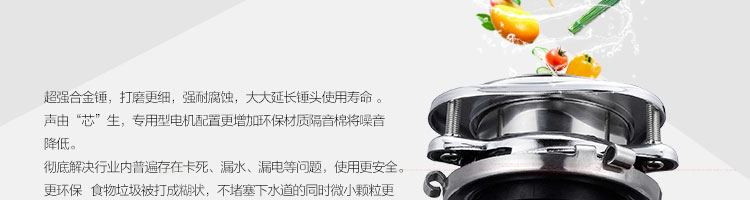 ACLQ37-廚房垃圾處理器,采用先進的研磨系統(tǒng),采用特殊合金錘粉技術(shù),能根據(jù)垃圾的強度,自動調(diào)節(jié)工作位置,處理垃圾的范圍和細(xì)度優(yōu)良。能夠有效地將食物垃圾研磨成細(xì)小顆粒,直接從下水管道排出,從而實現(xiàn)及時方便快捷的廚房清潔,滿足現(xiàn)代健康家居的要求。