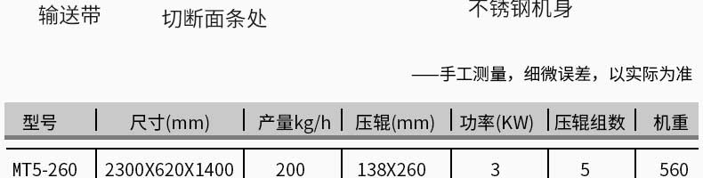 MT5-260型面條機(jī),不同的面刀可以做出不同形狀的面食做工細(xì),實(shí)用又方便,出面均勻,成型漂亮,可咨洵客服了解詳情