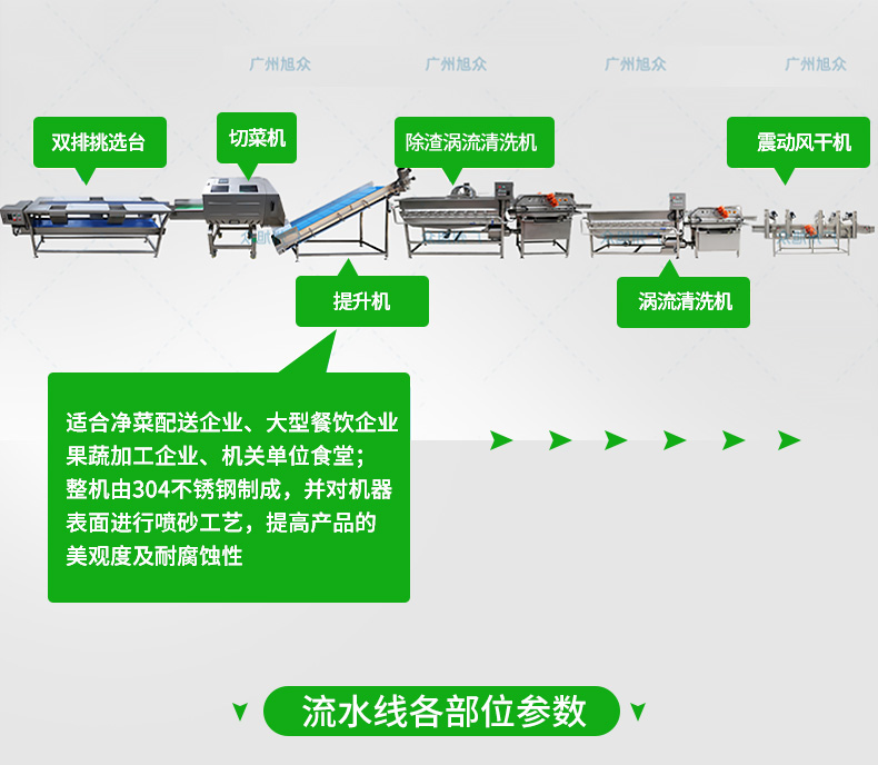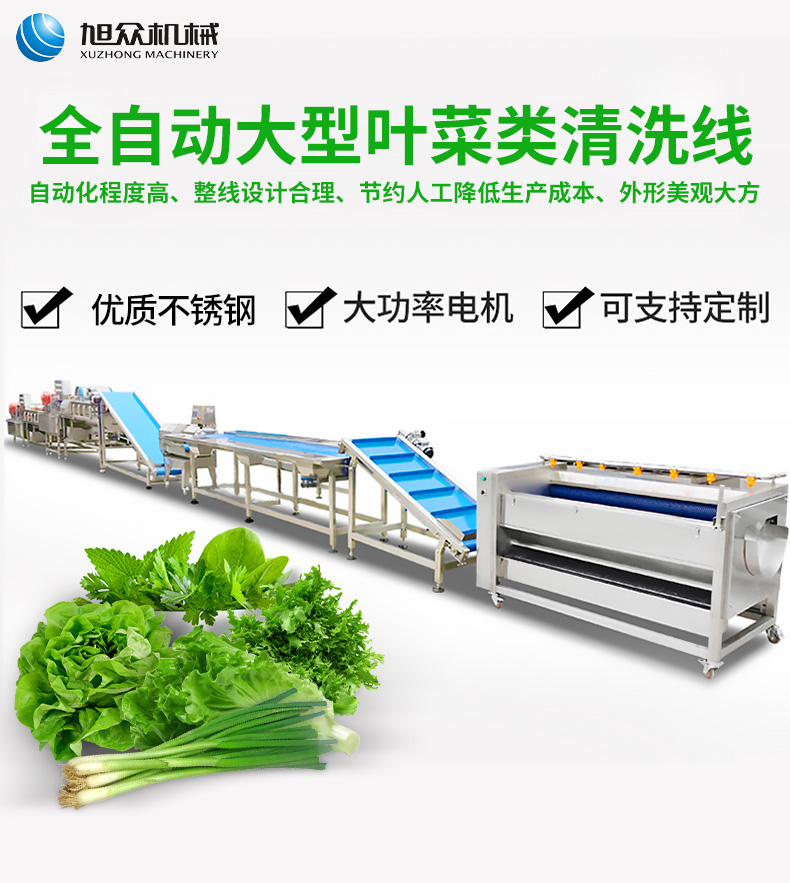 全自動(dòng)大型葉菜清洗線,自動(dòng)化程度高、整線設(shè)計(jì)合理、節(jié)約人工降低生產(chǎn)成本、外形美觀大方。主要用于葉菜加工,整線自動(dòng)化凈菜生產(chǎn)此線將切割、清洗、風(fēng)干設(shè)備連接成線,適合芹菜、韭菜菠菜、大白菜高麗菜、大蔥等葉菜類蔬菜加工生產(chǎn)