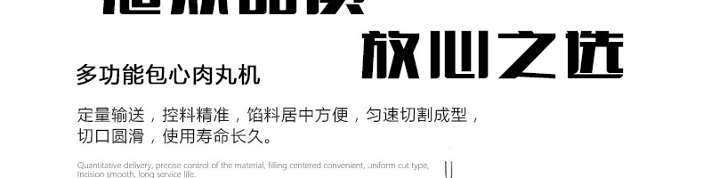 SZ-602包心肉丸機(jī),可生產(chǎn)包心魚(yú)丸、包心豬肉丸、撒尿牛肉丸、爆汁小魚(yú)丸等多種球形醬湯類包餡產(chǎn)品。操控性強(qiáng)、穩(wěn)定性高、出品率穩(wěn)定;可抽皮增餡,做到皮薄餡多。