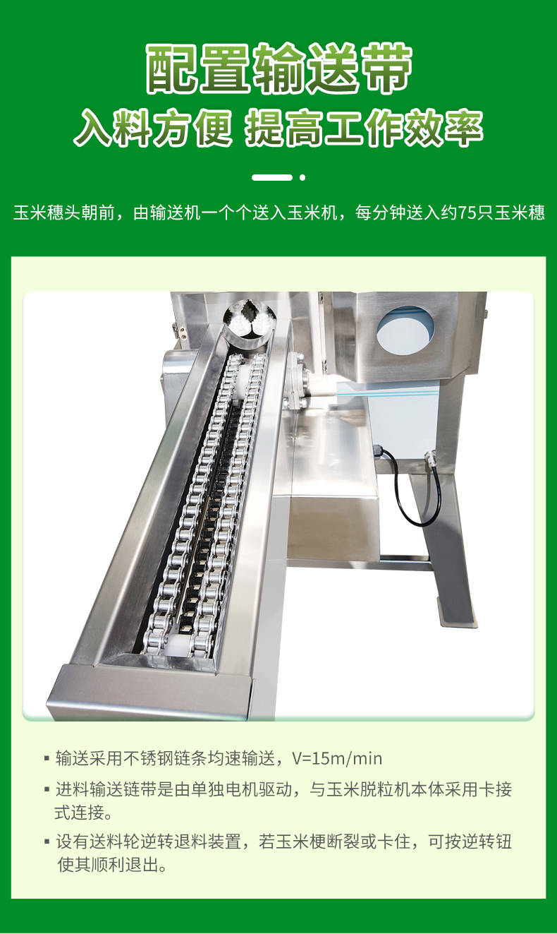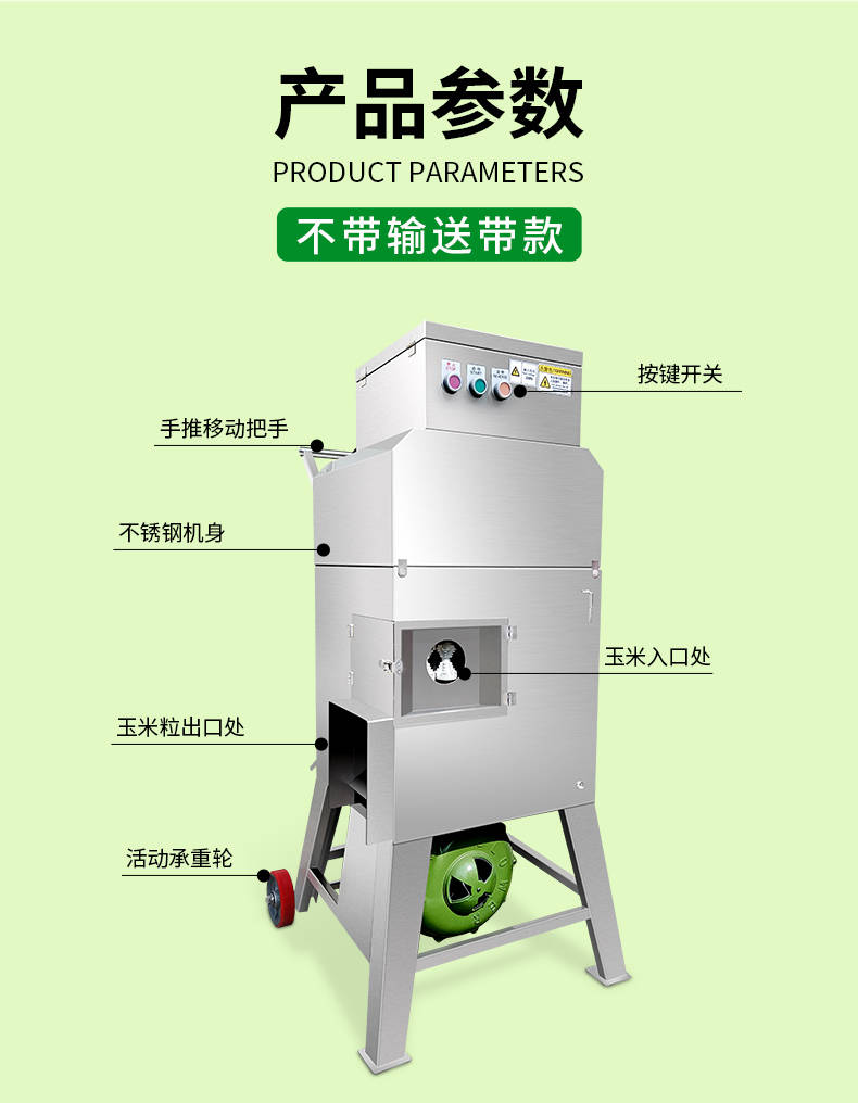 XZ-T138玉米脫粒機,鮮玉米脫粒機,高效脫粒。用于新鮮甜糯玉米脫粒工作,能很方便地把籽粒與梗桿分離。入料方便、脫凈率高、不碎粒不爛芯。每分鐘處理75個玉米穗。高效脫粒,滿足商用,籽粒產(chǎn)量約為500-600Kg/h