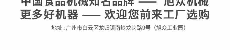 廣州旭眾食品機(jī)械有限公司是一家集科研開發(fā),生產(chǎn)設(shè)計,營銷服務(wù)為一體的現(xiàn)代化生產(chǎn)企業(yè)?,F(xiàn)代化生產(chǎn)車間,精湛制造技術(shù),所產(chǎn)機(jī)械歷經(jīng)市場重重考驗(yàn),不斷贏得海內(nèi)外客戶的贊譽(yù)。