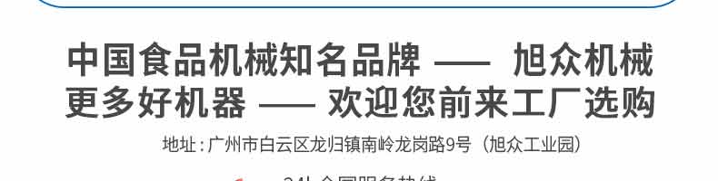 廣州旭眾食品機(jī)械有限公司是一家集科研開發(fā),生產(chǎn)設(shè)計(jì),營銷服務(wù)為一體的現(xiàn)代化生產(chǎn)企業(yè)?,F(xiàn)代化生產(chǎn)車間,精湛制造技術(shù),所產(chǎn)機(jī)械歷經(jīng)市場重重考驗(yàn),不斷贏得海內(nèi)外客戶的贊譽(yù)。