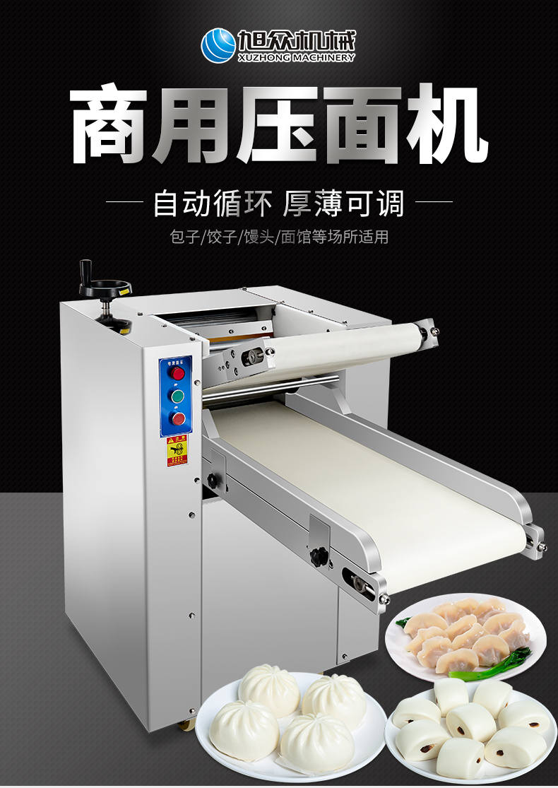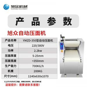 YMZD-350自動壓面機,自動循環(huán)、厚薄可調(diào)。包子、餃子、饅頭,面館等場所適用。啟動循環(huán)壓面、揉面。全自動仿人工揉面,壓面自動輸送、揉、壓、折疊。
