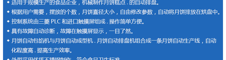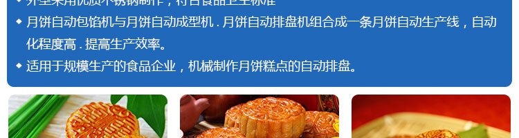 SZ-08型月餅自動排盤機,可同于制作各種月餅。適用于蛋糕房、休閑食品廠、食品加工產(chǎn)、面包房、月餅加工廠、超市、學校、食堂等各種工作場所??蓾M足不同客戶群體。免費提供工藝技術。
